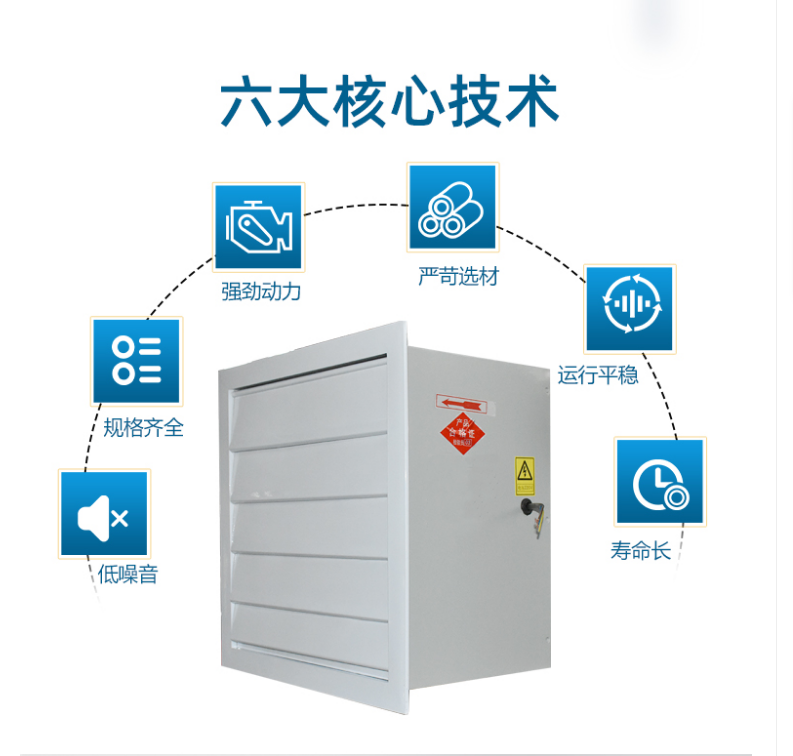 整機采用CAD/CAM設計,具有投資成本低,風量大,噪音低,耗能小,運行平穩,壽命長,效率高等特點,百葉窗自動起閉達到防塵,防水,美觀大方;即可吹風,是現代化廠房降溫通風的最佳選擇,也可抽風。環保,節能的方型軸流風機,降溫濕廉將成通風降溫設備市場主流。
