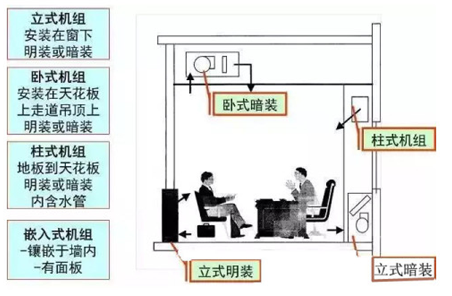 3。各種類型風(fēng)機盤管裝置的安裝位置