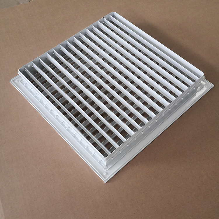 通常安裝于管道或側墻上作側送風口.雙層百葉風口有兩層可調節角度的活動葉片,短葉片用于調節送風氣流的擴散角,也可用于改變氣流的方向;而調節長葉片可以使送風氣流貼附頂棚或下傾一定的角度(當送暖風時).雙層百葉風口的外層葉片或單層百葉風口的葉片可以平行于長邊,也可以平行于短邊,可以根據客戶的要求來選擇.
